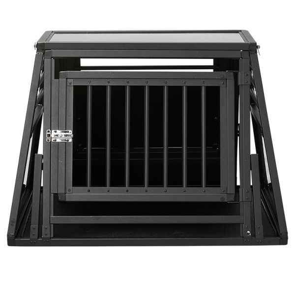 K9 Pro er det beste og sikreste hundeburet du kan få til hunden din. Solide materialer, fantastisk byggekvalitet og et hundebur i aluminium/aluminiumskompositt. Ekstra kraftig skyvelås som er enkel å betjene.