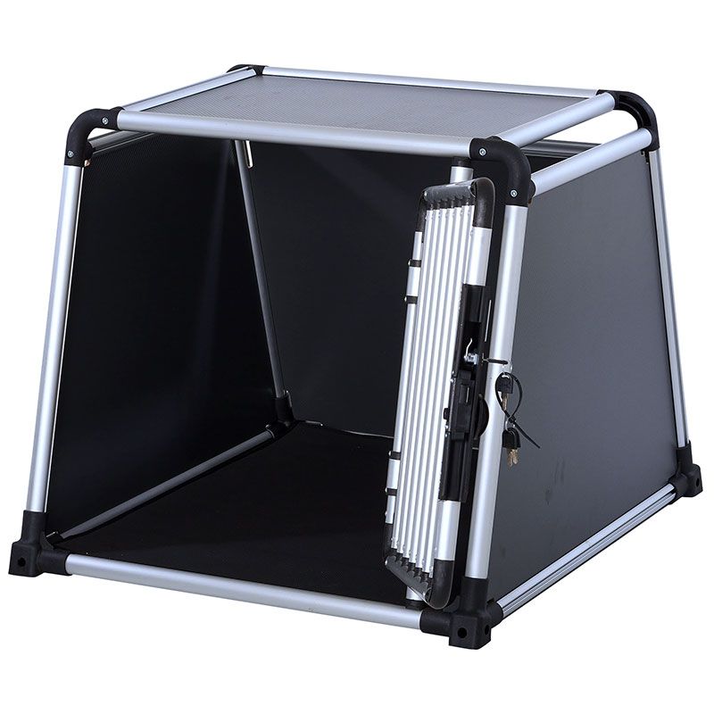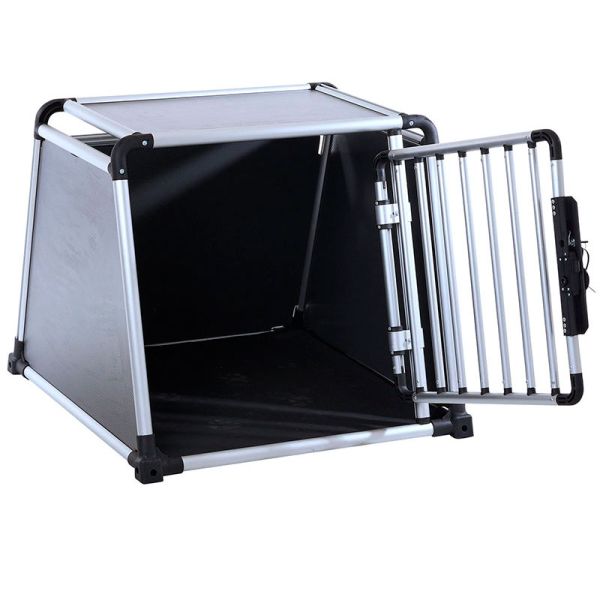 Dette sikre Elite hundeburet har forsterkede sikre og enormt tykkere aluminiumsprofiler. En enkel dreielås kan betjenes med en hånd og den kan låses med nøkkel.